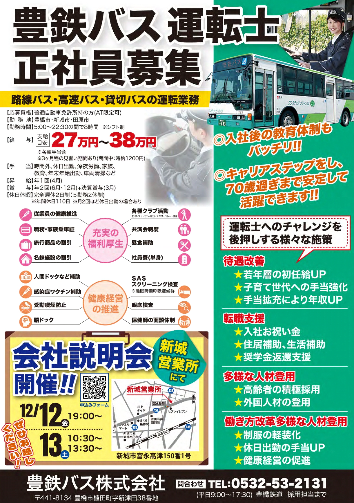 豊鉄バスでは、下記日程で新城地区会社説明会を実施いたします。
